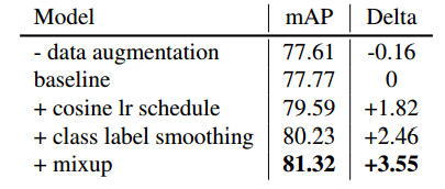 在不修改网络架构和损失函数的情况下,在现有模型的基础上实现了 5% 的绝对精度性能提升。而且这些提升都是「免费的午餐」,无需额外的推理成本。