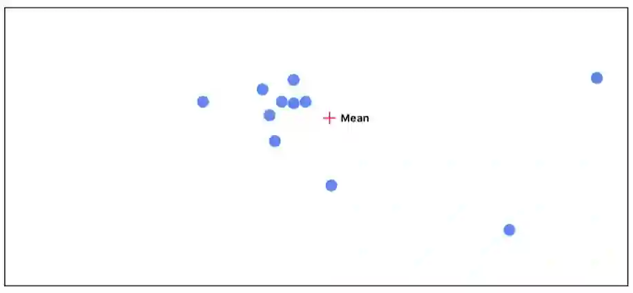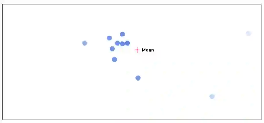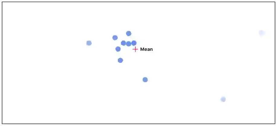 接下来我们可以测量每个点和平均值点之间的距离。距离越远的点,其重要程度就越低。