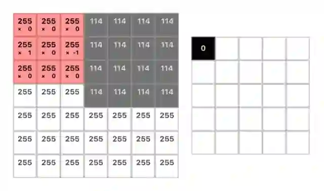 卷积操作一开始会在图像的一角设置一个小的窗口,然后移动它遍历整幅图像。在每一个位置我们都仅仅关注窗口所覆盖的像素并且将其中全部的像素值与对应的权重相乘并求和。而这个窗口实质上是一个被称为「卷积核」的权重矩阵。