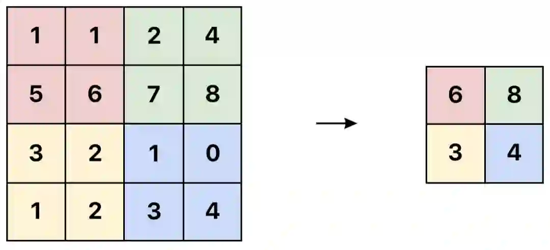 接下来的一步是决定将要被传递给下一个层级的信息。在传统的网络中,我们也许会使用类似于「最大池化」的一些方式。最大池化通过仅仅传递某一区域中激活值最大的像素到下一层的方式来降维。