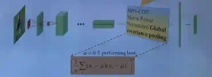 基本的方法很简单,即将一阶的均值换成二阶的协方差。不过这里协方差有一个幂,经验证该幂值取 0.5 时的性能最优,它解决了两个问题:解决了小样本高维度难以统计的问题;有效地利用了协方差矩阵(是一个李群)的几何结构。这方面的理论工作发表在 CVPR 2016 中。