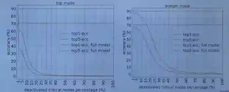 苏航将这些对预测起关键作用的神经元称为 critical nodes,而这些 critical nodes 的数据流传递路径则称为 critical data routing paths。如果将这些 critical nodes 设置为 0,整个网络的预测将显而易见地迅速恶化。