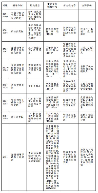 中国的大学就必须具备中国大学的基本样态,而中国大学的基本样态就是“党委领导下的校长负责制”。“党委领导下的校长负责制”是中国高等教育的创举,是中国人办出有自己话语权的高等教育体系的标识,也是最大体制特色,这也是我们对近70年中国高等教育发展史梳理后的结论[17]。习近平总书记在2016年的全国高校思政工作会议上指出:“我们的高校是党领导下的高校,是中国特色社会主义高校”,“办好我们的高校,必须坚持以马克思主义为指导,全面贯彻党的教育方针。高校党委对学校工作实行全面领导,承担管党治党、办学治校主体责任,把方向、管大局、作决策、保落实”。这一高瞻远瞩既是马克思主义中国化在新时代的我国高等教育事业中的进一步推进,也是对我国高等教育发展的历史经验与教训的总结与凝练。