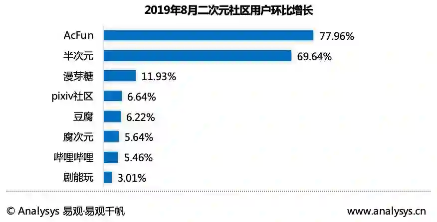 二次元社区AcFun自2018年6月被快手全资战略收购以来,借助快手带来的充裕现金流以及强大技术能力输入,在今年暑期档重新收获用户流量,2019年8月活跃用户规模环比增长77.96%,增至302.76万人。虽然相比另一二次元代表平台B站,A站在用户量级上还有较大差距,但近期价值5.7亿元的UP主扶持计划、版权内容采买、丰富社区活动运营等都昭示了AcFun希望再次获得二次元受众的决心。