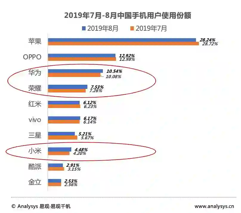 运营商方面,运营商市场基本保持稳定,终端方面,华为、荣耀、小米份额进一步提升,三星、苹果市场份额有所下滑。