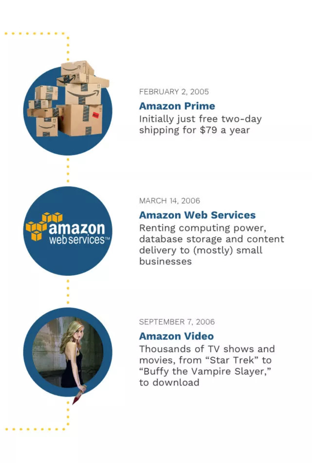 本来,故事到此似乎就应该结束了。但作为西方世界的主导在线零售商,亚马逊又开始着手解决技术和物流方面的问题。贝索斯将这些视为公司自身的业务,而不是额外的业务。例如,公司内部对兼职开发人员的需求,导致Mechanical Turk(世界上最早的临时工作众包平台之一)的诞生;建立高效的配送基础设施,导致亚马逊物流服务的诞生;管理每笔订单的收款,导致 Amazon Pay的出现。最重要的是,当亚马逊构建基础设施在云端存储数据时,贝索斯认识到其他商家也需要存储数据。为此,亚马逊云业务AWS诞生。去年,AWS营收175亿美元。