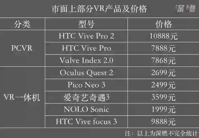 其余市面上热度较高的机型,还有爱奇艺奇遇3、Nolo Sonic、以及HTC Vive Focus 3等产品。