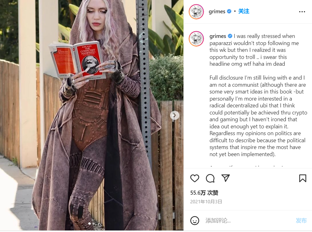 2021 年 10 月:Grimes 证实,她仍与马斯克住在一起