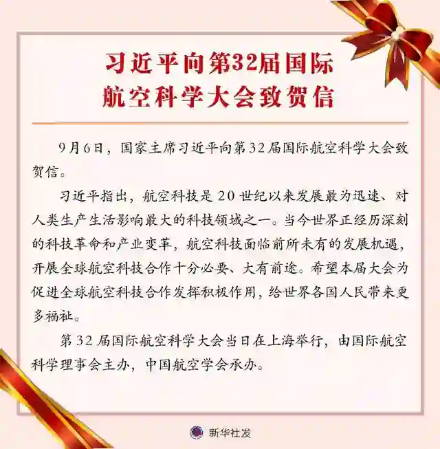2.习近平向第32届国际航空科学大会致贺信 2021年9月6日,习近平总书记向第32届国际航空科学大会(ICAS 2021)致贺信。国际航空科学大会被誉为航空科技界的奥林匹克盛会。本次大会是国际航空科学大会时隔29年后再次在中国召开。
