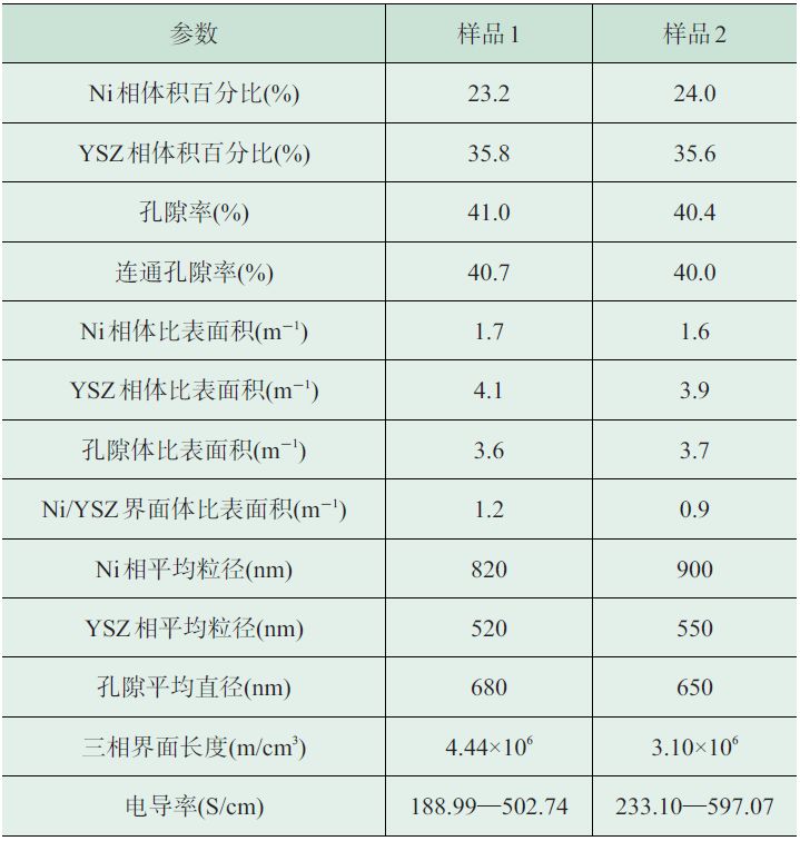 表1 定量计算得到的Ni—YSZ阳极一些关键结构参数[24]
