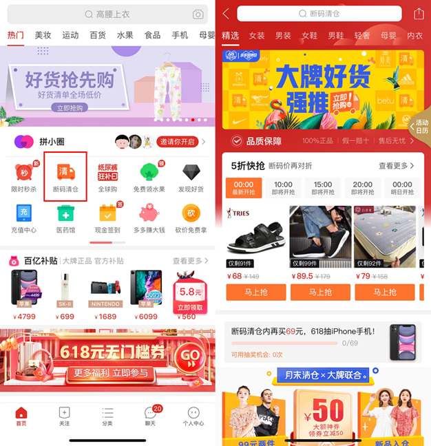 然而,今年唯品会恐怕不能置身事外,活跃买家数不断增长的拼多多也开始向尾货下手了,拼多多首页上的断码清仓窗口做的就是唯品会尾货的生意。