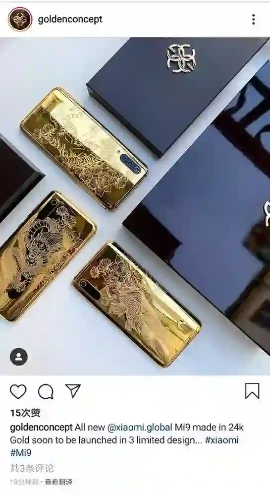 小米 9 自发布以来,受到许多“米粉”和消费者的喜爱,这款手机的透明尊享版和王源限定版更是如此。如今,小米 9 可能又要多一个衍生版本,不过相比另外两款显得十分奢侈。5 月 10 日,小米 9 24K 黄金定制版亮相。