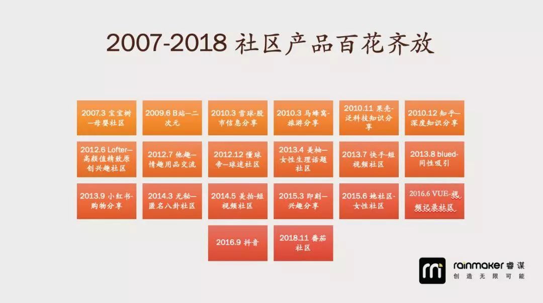 第三个时期是2007年到2018年,这是网络社区百花齐放的时候。