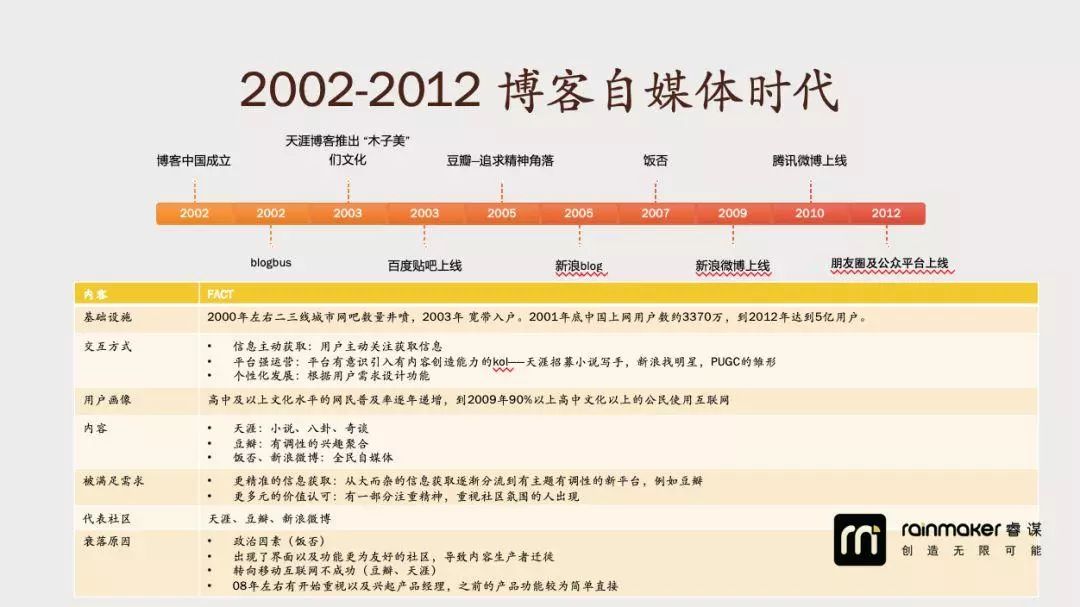 第二个时期是2002年到2012年,博客自媒体迸发推进的时代。