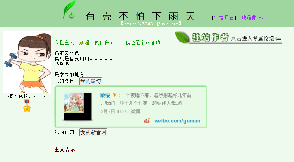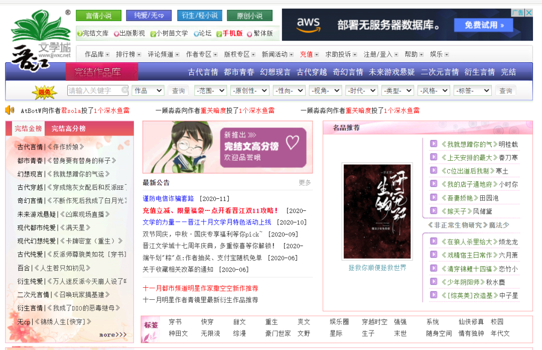这个论坛和它的主站“晋江原创网”一样,已经快满20岁了。互联网的高速发展似乎并未改变晋江的时间速度——点开它的主页,界面仍然是web2.0的“粗糙质感”:简单的红白绿三配色,稍显“复古”。