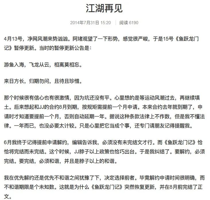 如果放到整个网文发展的历史里来端详,就会知道这是一种必然结果。