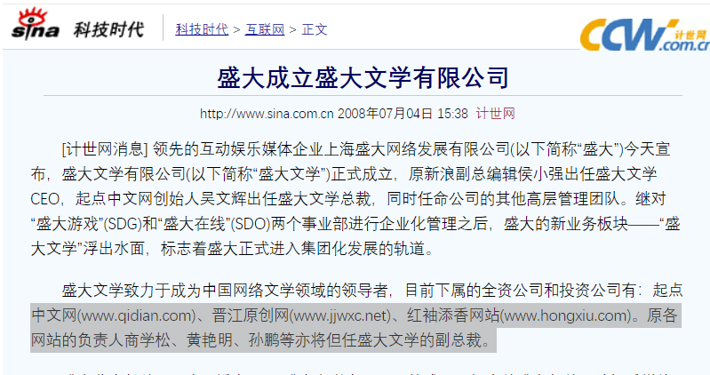 而与晋江的商业化同步发生的,还有盛大的收购,当年7月,盛大文学参股晋江原创网,持股比例为50%。黄艳明告诉毒眸,当时也有四、五家和晋江谈收购,最终选择了盛大,是看中了他们丰富的支付渠道。