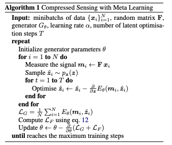我们假设CSGM(Bora et al. 2017)的运行时效率和性能可以通过使用元学习训练潜在的优化过程、通过梯度下降步骤的反向传播来提高。