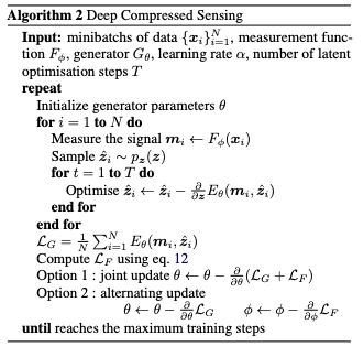 下面的算法2总结了这个扩展算法。我们称之为深度压缩感知(DCS) ,以强调测量和重建可以是深度神经网络。