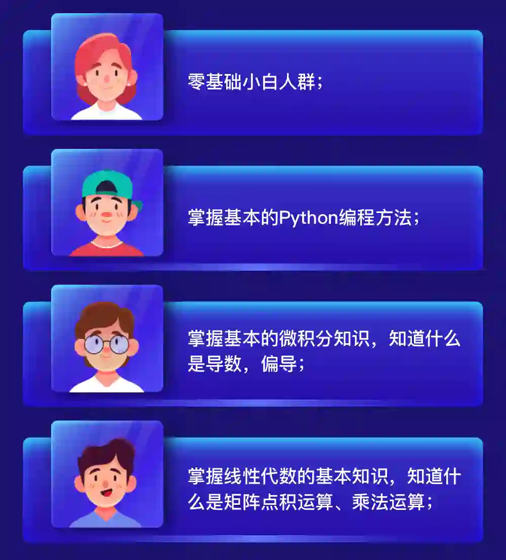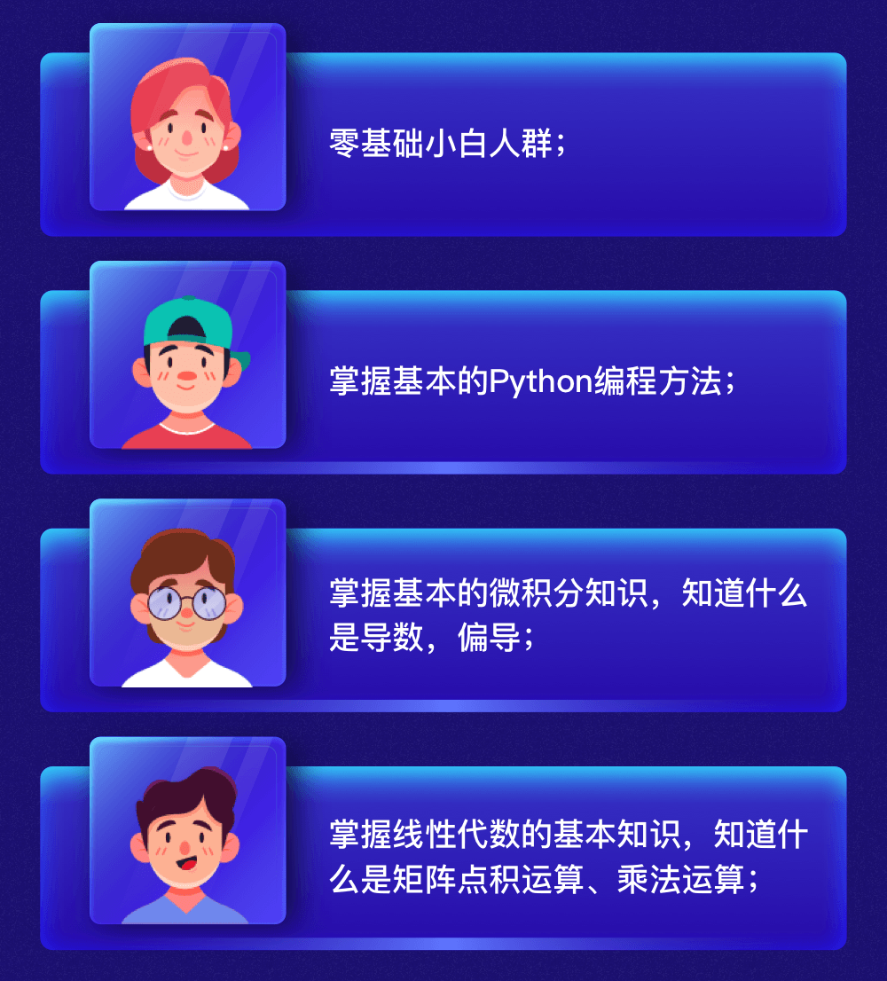 这次3天训练营,需要来参加课程的同学只需要掌握基本的Python编程方法就可以。相关的数学知识,会在课程给大家讲明白。