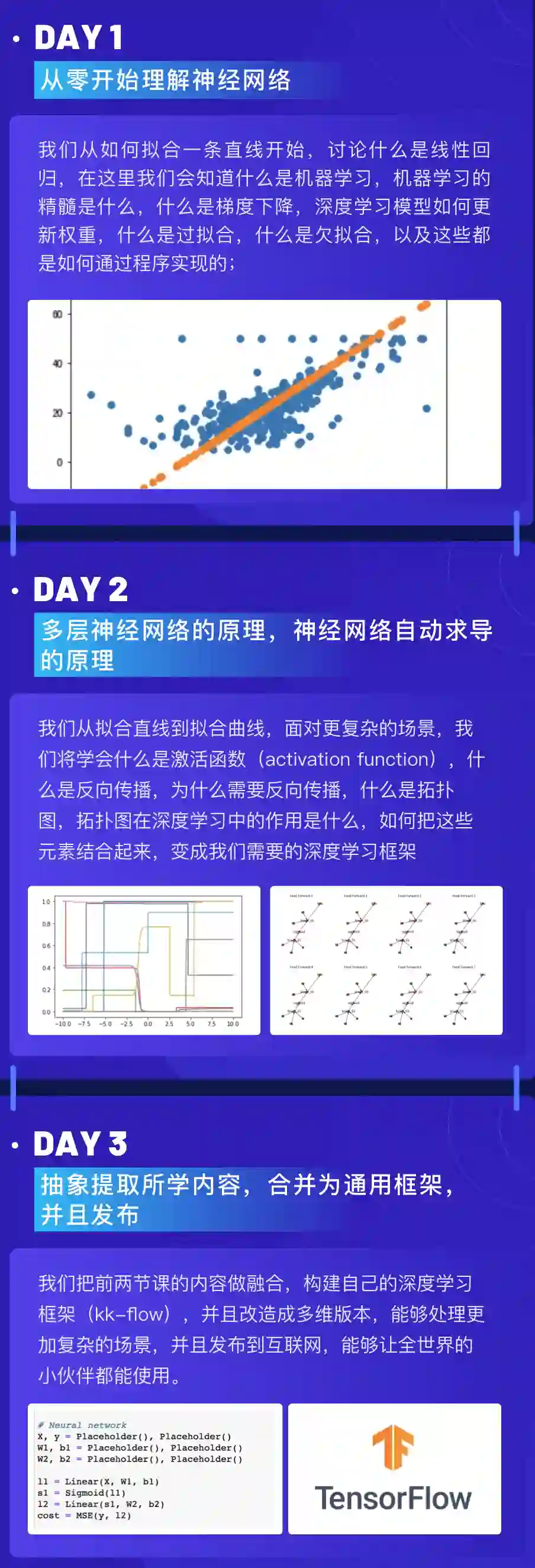 为了让更多的人从根本性的掌握AI知识,特为你推出《用纯Python从零创造自己的深度学习框架》,我们将用三天的时间让大家深入的了解与学习深度学习框架。