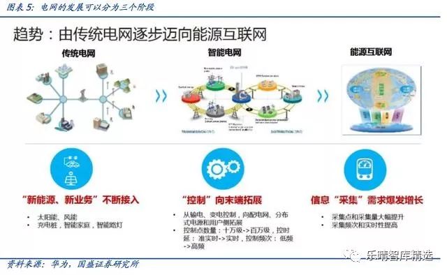 我们认为国网提出的“三型两网”建设能源互联网战略是解决上述三个问题的的有效途径,未来基于5G、人工智能等众多互联网技术和模式,望对传统电网进行赋能。
