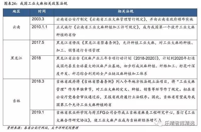 1. 云南是我国第一个放开工业大麻种植的省份,2010年正式施行《云南省工业大麻种植加工许可规定》。