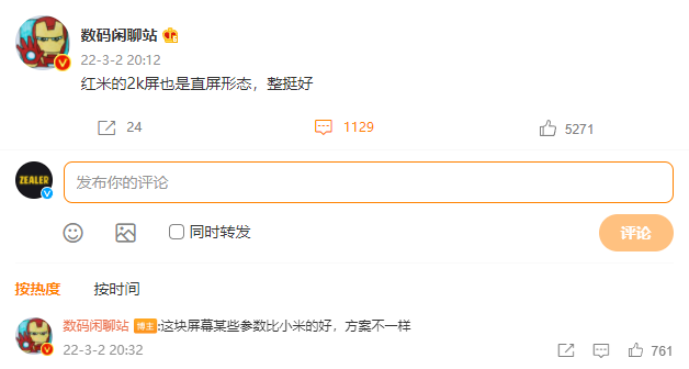 Redmi K50 Pro+ 或将采用 2K 高分直屏