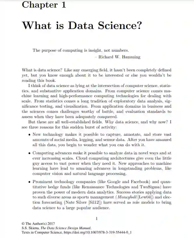 《数据科学设计手册》是数据科学的介绍,重点介绍建立收集、分析和解释数据的系统所需的技能和原则。作为一门学科,数据科学位于统计学、计算机科学和机器学习的交汇处,但它正在构建自己独特的分量和特征。