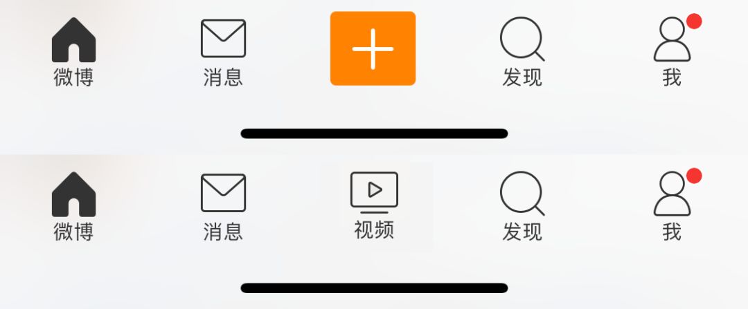 这是一次很激进的更新,最为明显的便是调整了产品的一级导航,将原来的「微博」-「消息」-「写内容」-「发现」-「我」,改为「微博」-「视频」-「发现」-「消息」-「我」,原先最醒目的「写内容」的入口已经丢到首页的右上角去了。