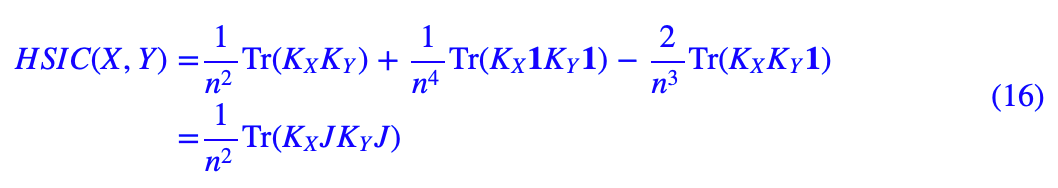 最后,再利用等式 (9),方括号里边的实际上就是,于是,HSIC 就登场了: