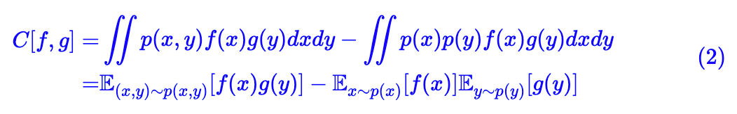 p(x,y)≡p(x)p(y) 当且仅当对于任意的 f,g,下式都等于 0: