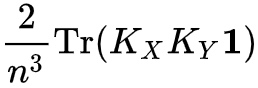h = np.trace(Kxy) / n**2 + np.mean(Kx) * np.mean(Ky) - 2 * np.mean(Kxy) / n