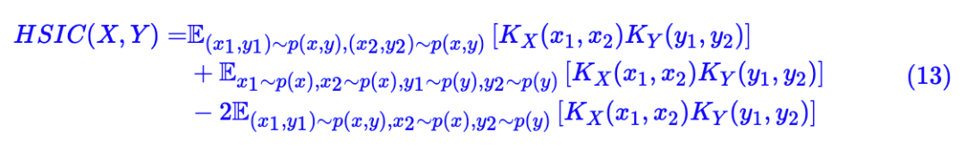 HSIC 的作用跟互信息类似,但是跟互信息不一样的是,它不需要估计两个变量的概率密度,而是直接转化为采样的形式。