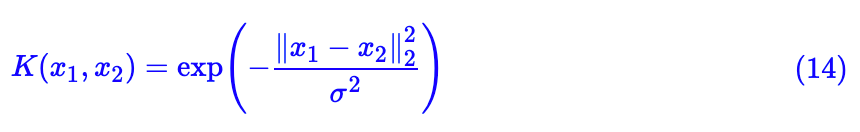 这就相当依赖核函数选择和原始问题的背景了。从常用核函数 (14) 的形式我们大概可以感知到,核函数相当于两个样本之间的相似度,问题是什么样的相似度定义才是真正符合问题背景的,这并没有标准答案,而且通常都是很困难的问题。