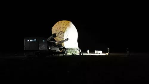图为“极目一号”浮空器顺利升空(图片为30秒延时拍摄,并做了后期处理) 中科院空天信息研究院供图