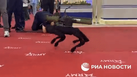 在本周的俄罗斯军火展(Army-2022)上,出现了一个背着火箭筒的机器狗,话不多说,先来看看这个机器狗长啥样?
