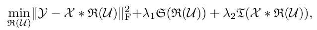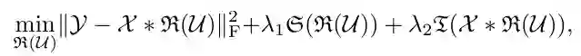 为弥补这一缺陷,我们提出了一种新的张量回归模型。通过对张量环分解的潜在因子施加组稀疏约束,以此来实现张量环秩的自动估计,从而获得高效紧凑的表示。此外,引入总变差约束项确保预测响应的局部一致性,以减少随机噪声所带来的不利影响。
