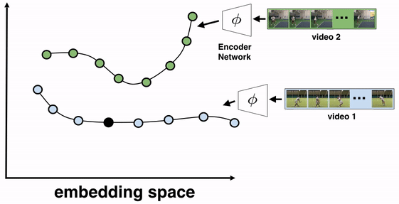 所以谷歌的研究人员提出了一种时间周期一致性学习(TCC)的自监督学习算法,可以在一段连续过程中,找到每一帧和某个具体动作的对应关系。
