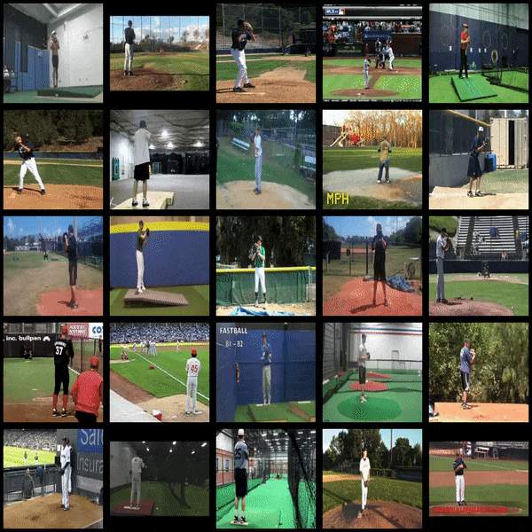 下面就是TCC将25个棒球投手视频的动作完全同步到一致的例子:
