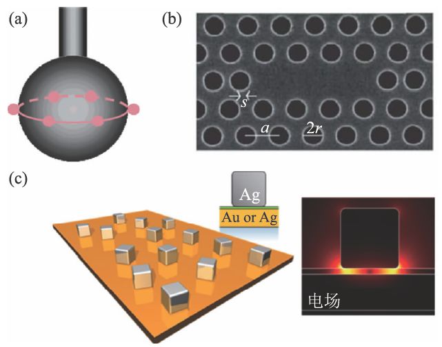 图2 (a)回音壁模式微腔[17];(b)光子晶体微腔[20];(c)复合表面等离激元结构及其间隙表面等离激元模式[29]