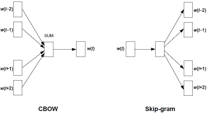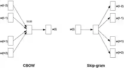 Word2Vec的网络结构有CBOW和Skip-Gram两种,如图10所示。相比NNLM,Word2Vec减少了隐含层,只有投影层。输出层是树状的Softmax,对每个词做哈夫曼编码,预测词时只需要对路径上的0、1编码做预测,从而复杂度从O(V)降低到O(log(V))。