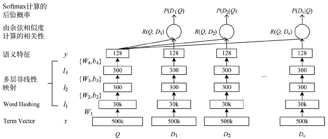 这类方法可以把表示和学习融合起来建模,比较有代表性的是微软的相关工作。下面将介绍DSSM系列内容。