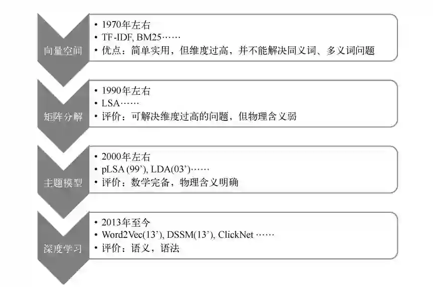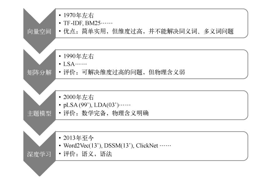 受到整体技术的演进影响,文本的匹配技术同样有一个顺应时代的技术历程,如图2所示。