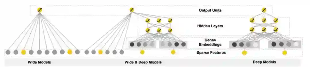 这种思路其实可以做些扩展。比如Wide连接不是在最外层,而是在某一层,Deep的某些层也可以连接到最外层,这样能充分利用不同层抽象的Dense信息。与Wide & Deep的网络连接方式类似,如2003年NNLM和2010年RNNLM模型里的直接连接(Direct Connection),其浅层和深层的结合能很好地加速收敛,深度学习的Highway方式也是类似的。目前Wide & Deep应用较多,比如在阿里巴巴就有比较好的应用。