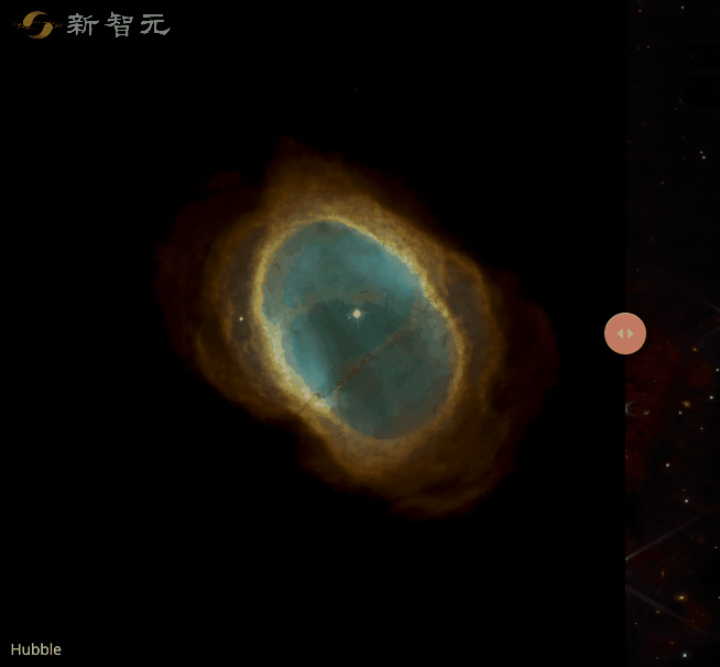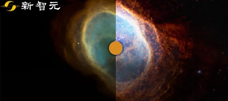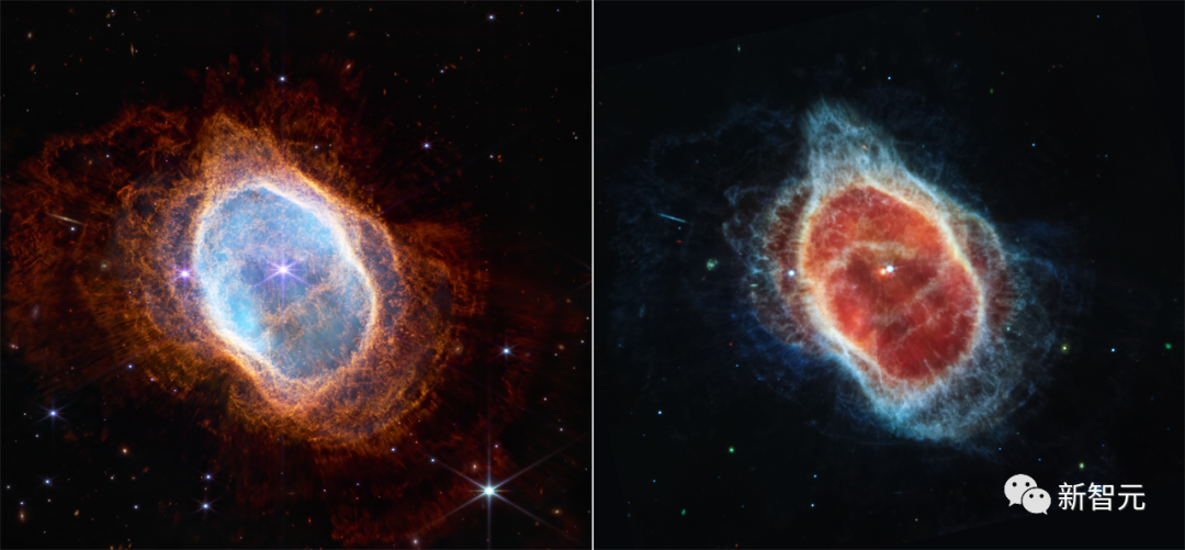 下图中是近红外光中红外光下,对南环星云的对比图。