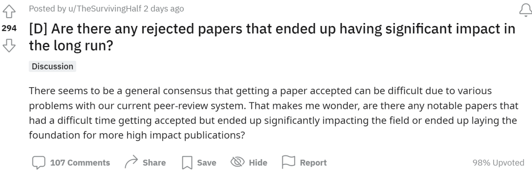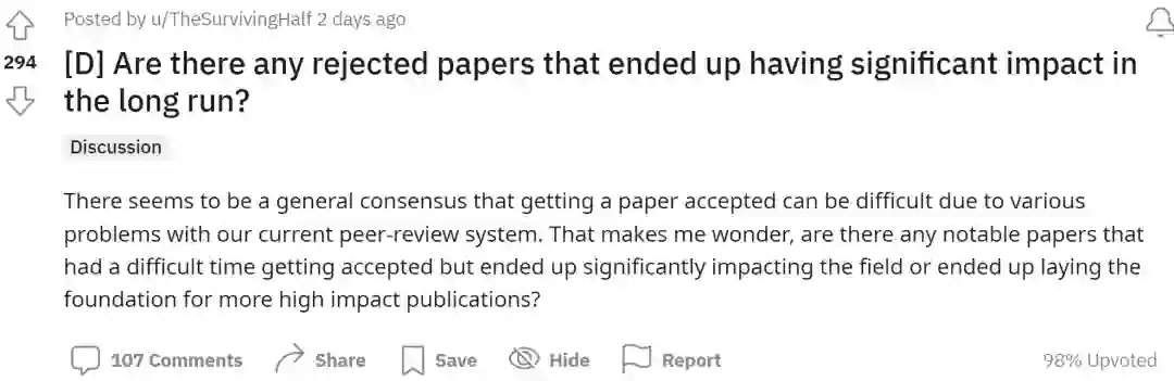 近日,Reddit 上就有一个帖子引起网友热议:哪些论文是被顶会拒稿,但却非常有影响力?令人惊讶的是网友列举出一些家喻户晓的研究,包括 YOLO、transformer XL,甚至还有 Google 搜索引擎的网页排名算法 PageRank。
