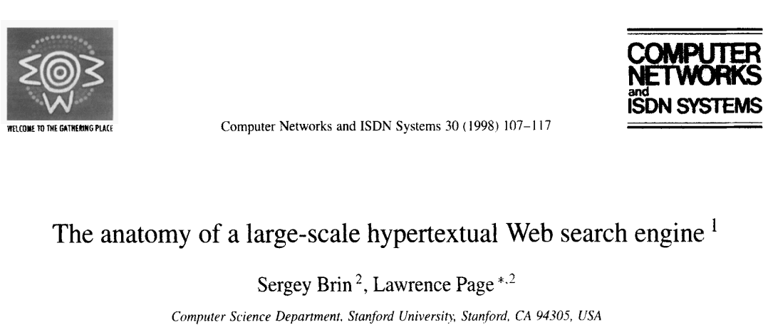 论文地址:https://snap.stanford.edu/class/cs224w-readings/Brin98Anatomy.pdf