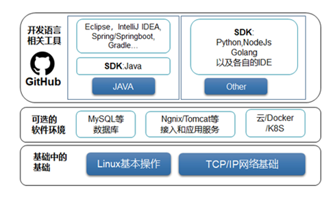 做到以上几点还没完,这只是成为一名区块链开发者的第一步。在 CSDN 主办、区块链大本营协办的 2019 区块链开发者大会上,微众银行区块链首席架构师张开翔进一步将区块链开发者所需要掌握的技能做了详细总结。他把区块链开发者所需要具备的能力分为三大类,即基本IT技能、区块链领域的基础知识栈、学习能力。