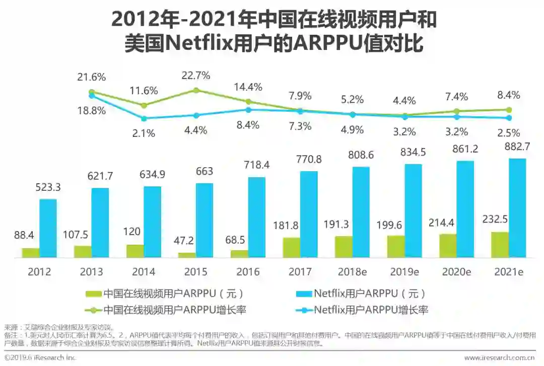 全球VoD 市场依托流媒体技术的快速发展进入持续增长阶段,但全球的流媒体发展水平不一。从中国和美国市场的流媒体视频平台横向比较来看,马太效应非常显著。中国和美国市场同样拥有三大巨头,美国市场分别是Netflix、Amazon Prime Video和hulu,中国市场分别是爱奇艺、腾讯视频、优酷视频。从会员人数上看,Netflix在本土市场一骑绝尘,根据其财报信息显示,2018年的美国订阅用户数为5849万,AmazonPrimeVideo同期的美国本土订阅用户数为2600万。回到中国市场上来看,三家视频平台可能还有较大的增长空间。 爱奇艺和腾讯视频位居行业前列,优酷虽未公布最新订阅用户数,但订阅用户数增长率也相当可观。对比中美视频平台用户的ARPPU值发现, 付费用户在国内视频平台上的人均支出仍明显落后于美国Netflix,因此国内平台有望通过更有吸引力的策略及付费模式来刺激用户付费。